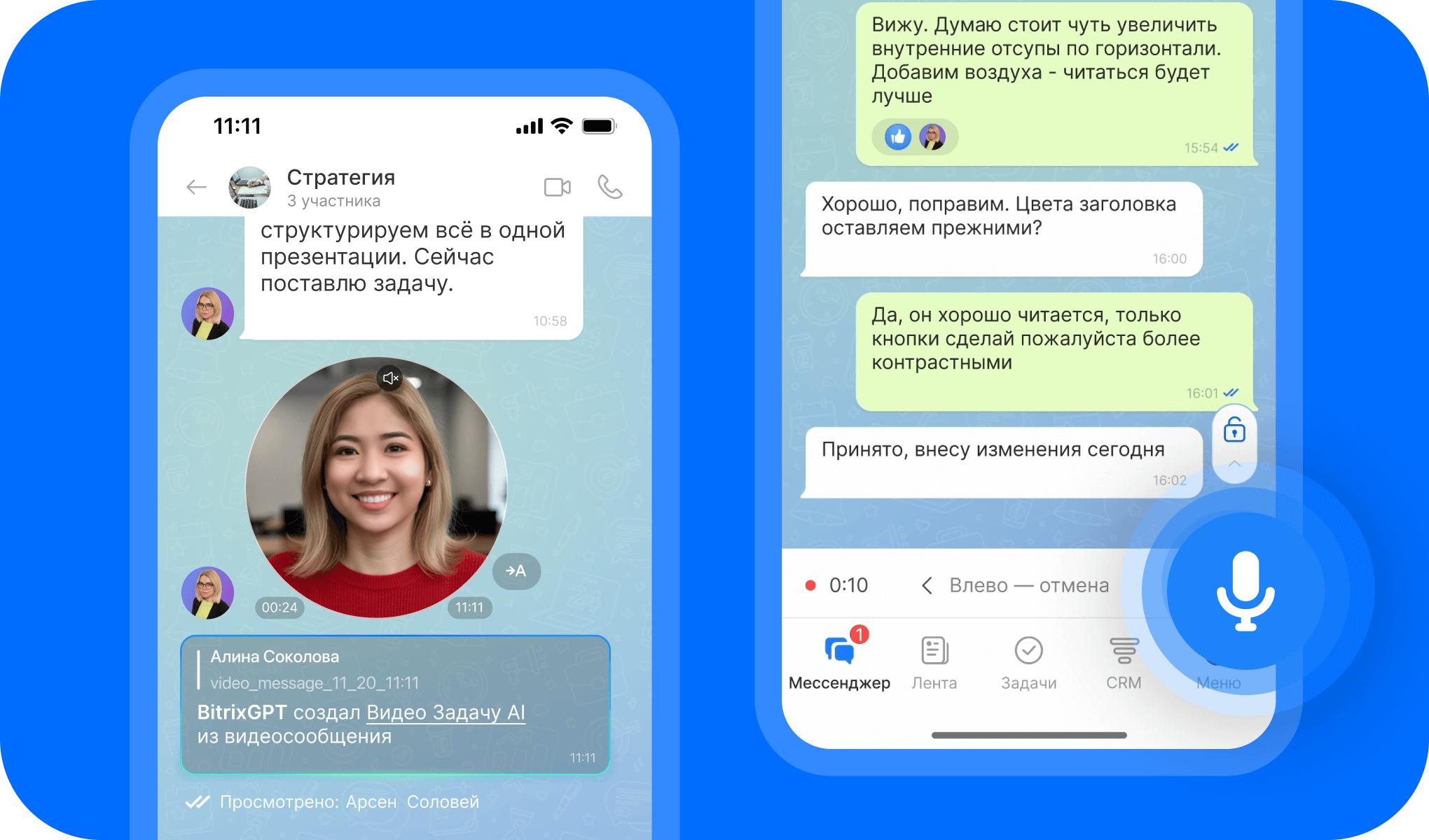 Всё рядом: сообщения, голосовые, файлы, результат. Быстро обсудили, тут же сделали — без вкладок и потери фокуса.